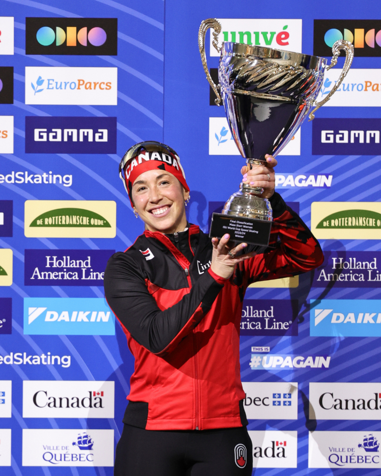 Valérie Maltais is a quadruple Olympian, with two Olympic medals under her belt. She is the first Canadian speed skater since 1988 to win an Olympic medal in short and long track speed skating. In 2023-2024, Maltais clinched the best season of her career, winning notably the overall title at the mass start.